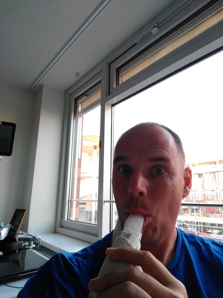 Als Belohnung habe ich von der Spätschwester auch noch ein Wassereis gebracht bekommen. Es hat sich also so oder so gelohnt mich etwas zu plagen. 🙂