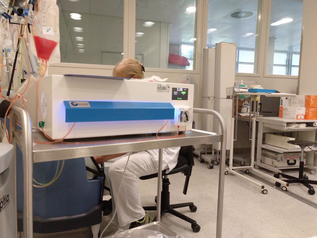 Was ist nun eine Photopherese? Kurz gesagt wird meinem neuen Immunsystem beigebracht, dass meine Haut, auch wenn sie mal etwas UV Strahlen abbekommt oder sonst angegriffen wird, trotzdem zu den Guten gehört und nicht angegriffen werden muss.